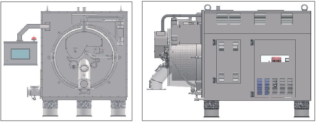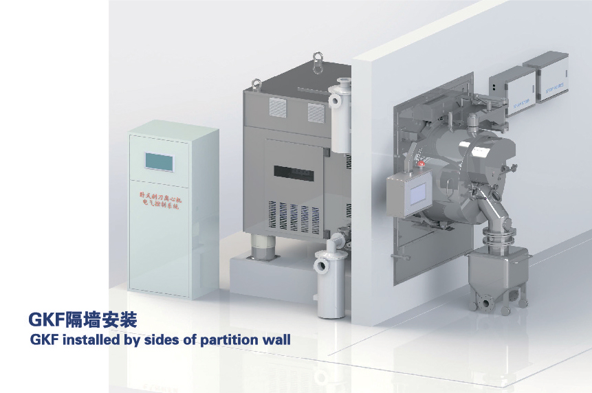 The automatic control system controls main engine, hydraulic system, pneumatic system, N2 protection system, valves as well as pumps, valves and material conveyance system etc. relating to the centrifuge.